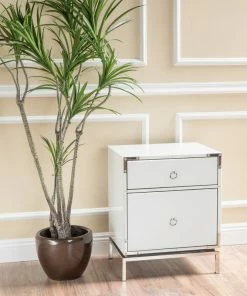 Outlet ๐ GDFStudio GDF Studio Danea White Glass 2 Drawer Bedside Table โค๏ธ