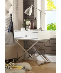 Outlet โ๏ธ Inspired Home Katie Square Lacquer-Finish X-Metal Leg Nightstand, White Chrome ๐ฅฐ