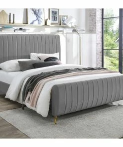 Discount ๐ฅ Baxton Studio Alinia Retro Fabric Upholstered Walnut Wood Platform Bed, Gray, Full โจ