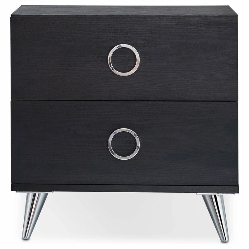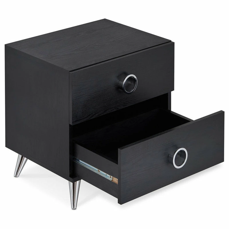 The Elms Nightstand has two drawers for stylish storage in your home. Place this nifty piece by your bed to put midcentury style on your side.