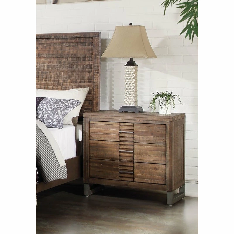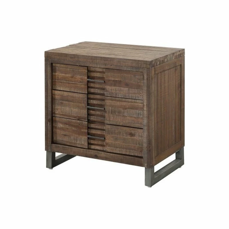 The Andria Nightstand features a reclaimed oak finish and a chic slatted element down the center of its front for a look that adds sophisticated edge to your design. Its clean lines and simplicity lend this Acme Furniture piece the versatility to be used in distinctly urban spaces as well as spaces that are a bit more subdued.