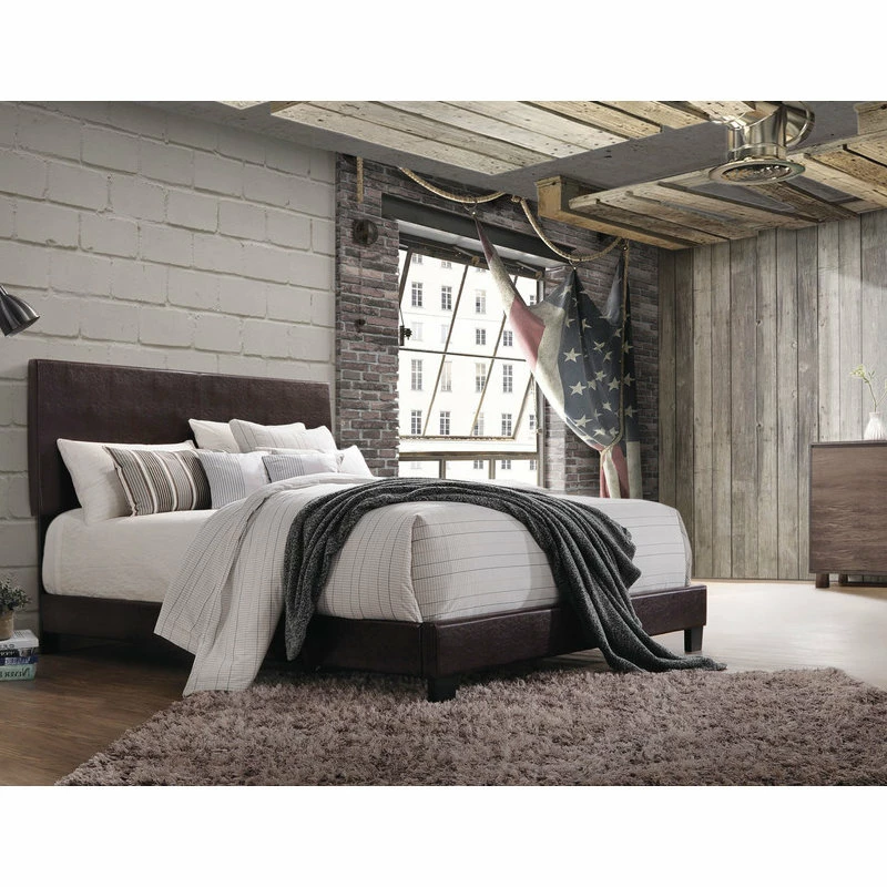Every bedroom needs a stylish centerpiece to tie together its decor. The simple Lien Leatherette Bed provides such a centerpiece, adding an elegant touch without detracting from other decorative elements in the space. The upholstered headboard and deep espresso color bring in a timeless yet contemporary touch to your master or guest room.