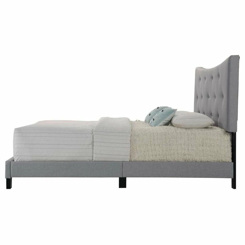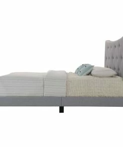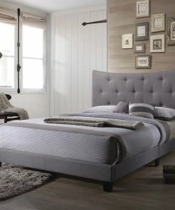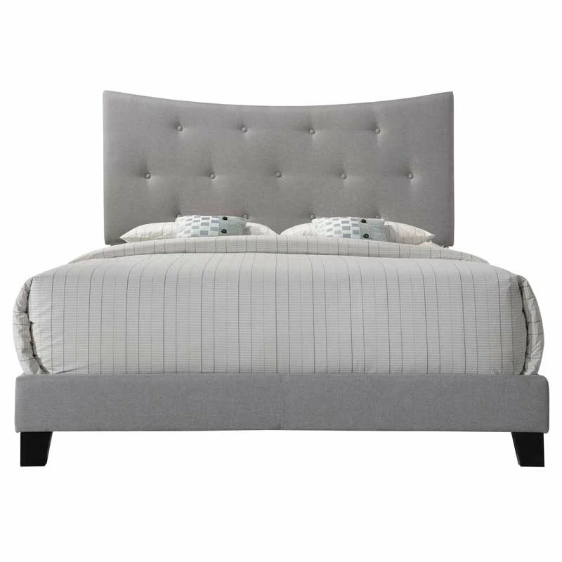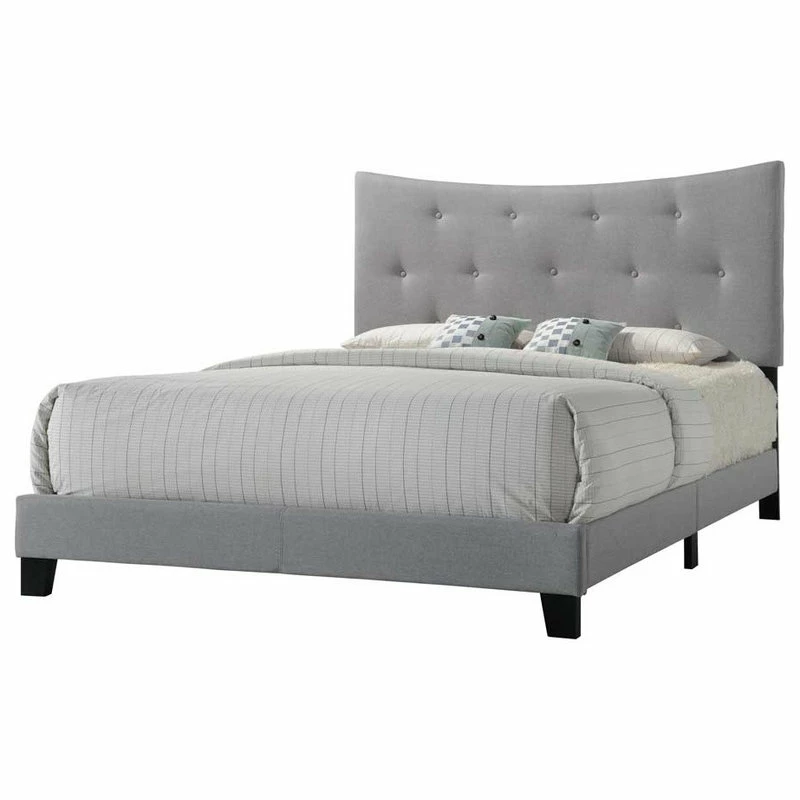 This stunning Venacha Bed will make a bold centerpiece in your master bedroom. The tufted headboard and light gray upholstery bring in a timeless yet contemporary touch to your master suite or guest room.