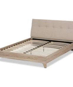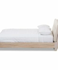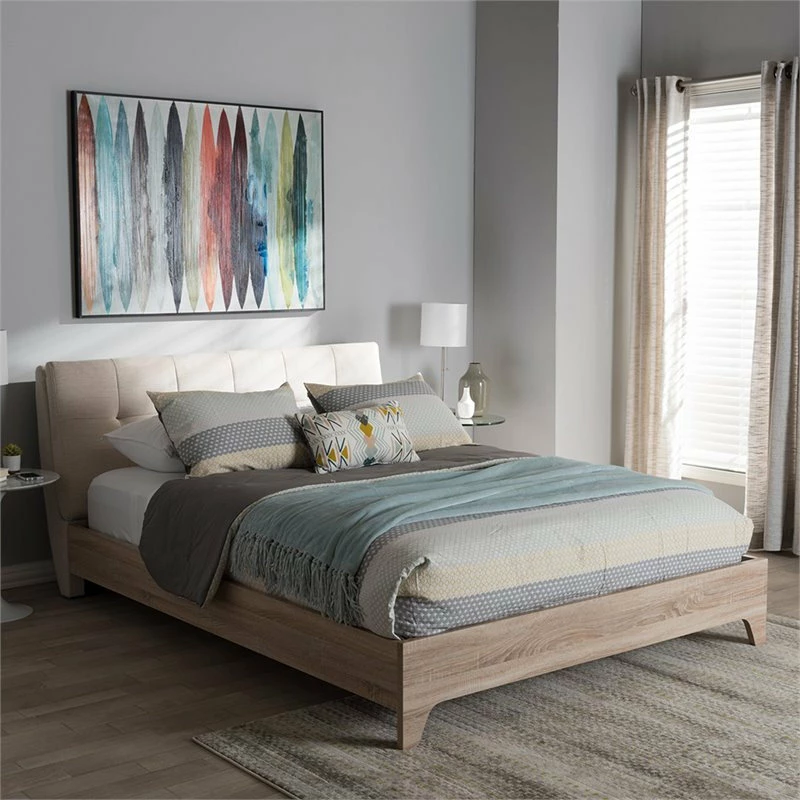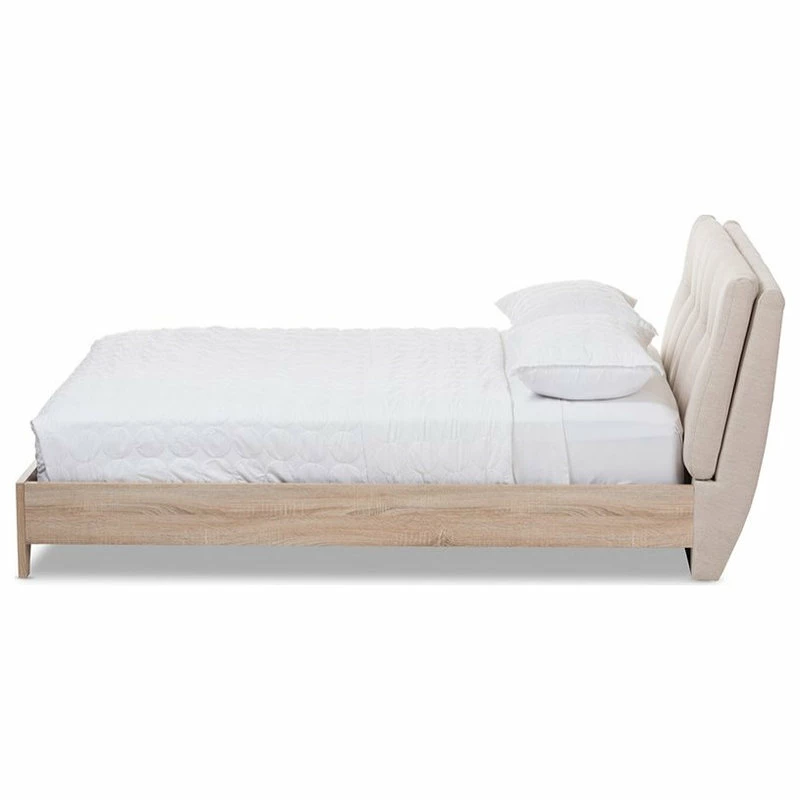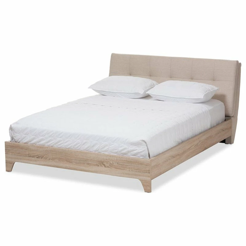 Simple, sleek and elegant, the Adelia platform bed is a tribute to industrial, modern or minimalist style reminiscent of innovative Danish design. The sturdy frame is crafted from engineered wood with soft, smooth lines and a whitewash finish, combining timeless beauty with contemporary flair of an upholstered headboard featuring grid-tufting and double-cushioning. The neutral beige fabric upholstery, matching with the whitewash finishing frame will add subtle warmth to your existing decor while giving your space the neutral element. Made in Malaysia, the Adelia platform bed requires assembly.