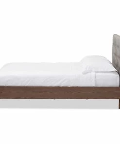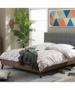 Discount ๐ฅ Baxton Studio Alinia Retro Fabric Upholstered Walnut Wood Platform Bed, Gray, Full โจ
