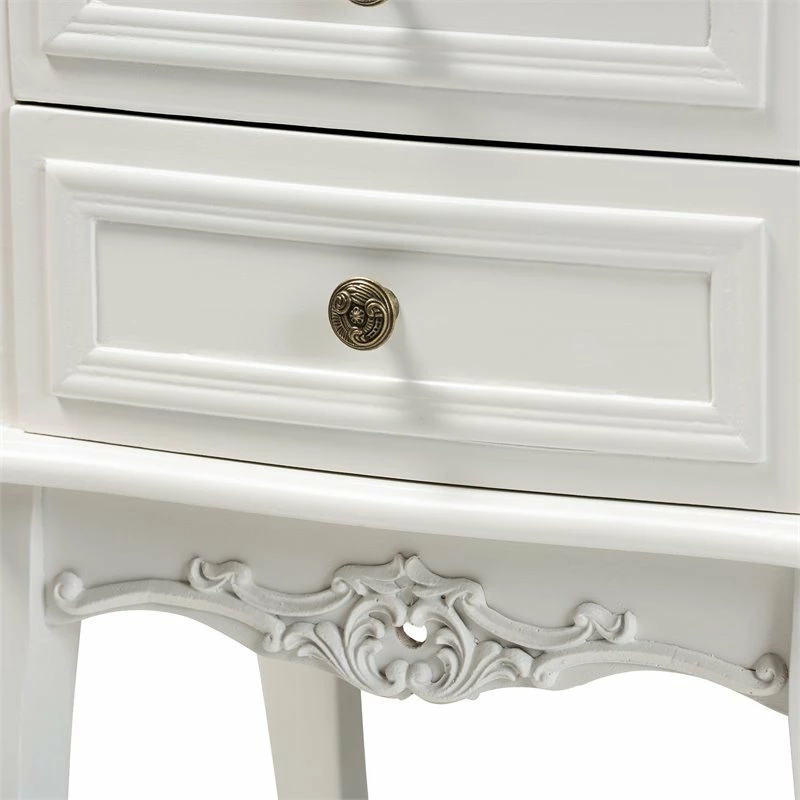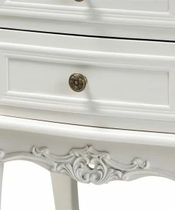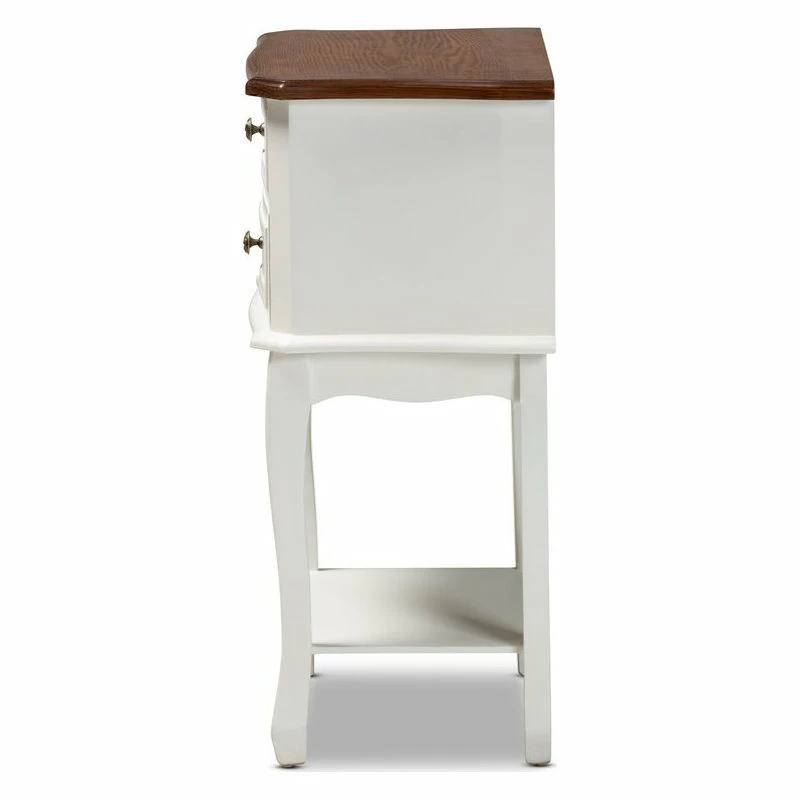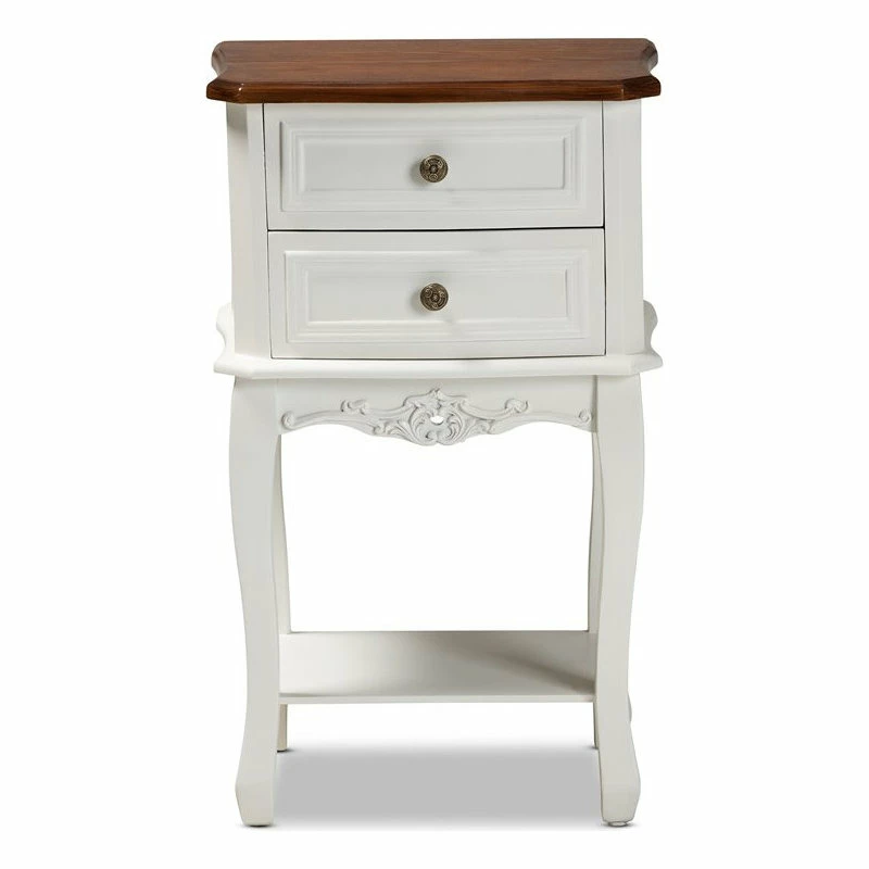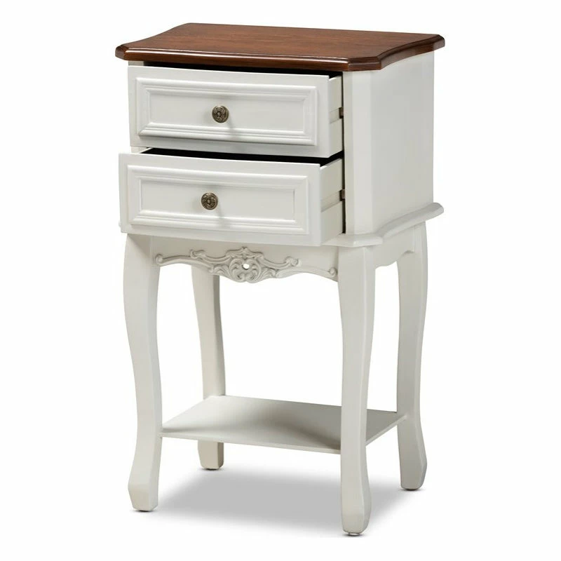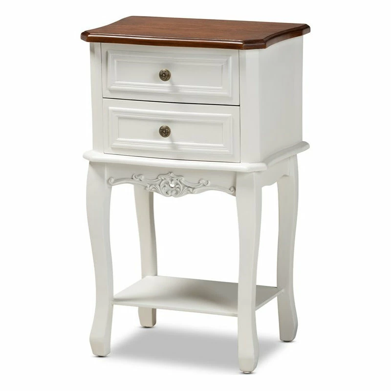 Bring a simple elegance to your interior with the wonderfully crafted Darla end table. Fitted with two drawers and a lower shelf, this piece offers plenty of room for household necessities. The Darla is made in China and showcases unique woodwork with inset paneled drawers and cabriole legs, giving the piece a traditional look. Fully assembled, the Darla’s cherry brown finished wood top offers ample space to display decorations. Artistically engraved knobs add a touch of glamour that elevate the Darla into a fantastic choice for any arrangement.