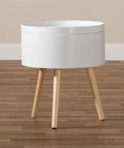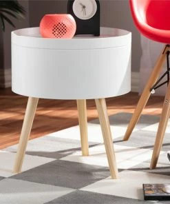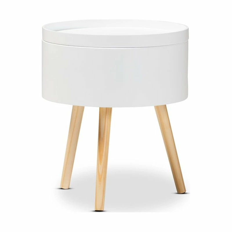 Add cool, quirky style to your home with the Jessen end table. The Jessen features a removable tray top, ideal for keeping phones and other items secure. When removed, the top reveals a spacious storage compartment for a variety of household essentials. Functional and stylish, the Jessen showcases a sleek neutral finish that is complimentary to a wide range of color palettes. Angled wood legs add a stylish mid-century feel. The Jessen end table is made in China and requires assembly