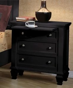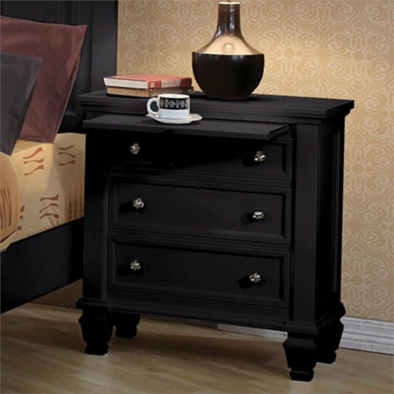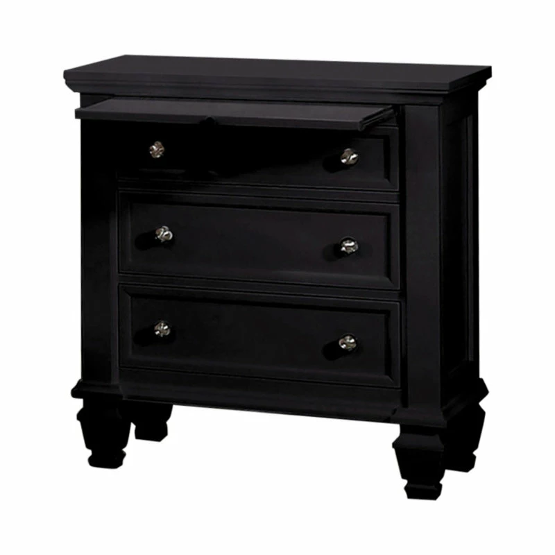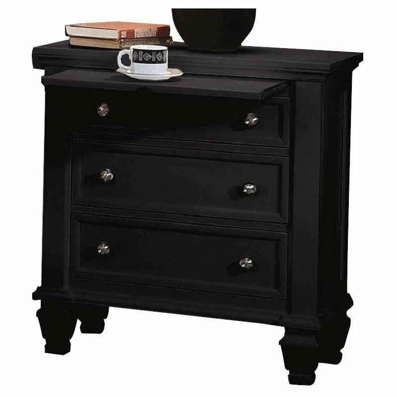 Exquisitely crafted for style and versatility, this nightstand is perfect for any bedroom. Three spacious drawers offer plenty of room to accommodate your personal possessions. Each drawer is complete with two classic round knobs, enhancing its sophisticated design. A slide-out tray provides an additional surface for books, beverages, and more. It blends seamlessly with a variety of color palettes and decor styles.