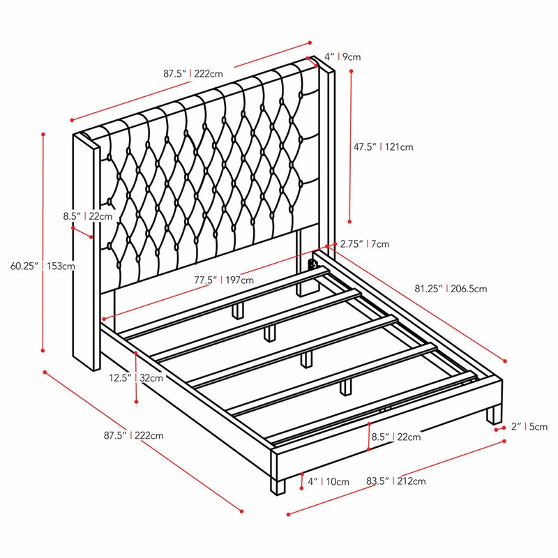 Create a stunning bedroom with this elegantly upholstered bed. A stately wingback design, beautiful diamond patterned stitching, and a low profile footboard style offers modern sophistication that can instantly transform your bedroom. Reinforced metal side rails and support legs provide a sturdy feel and a solid foundation, ensuring this bed will provide a comfortable sleep for years to come.