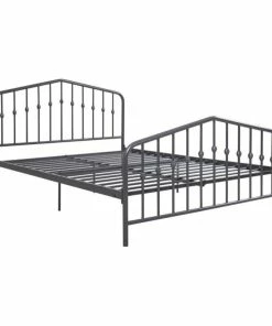 Get inspired to introduce fresh ideas into a sleepy space. The Novogratz Bushwick Metal Bed has a simple design with round finials featured on the headboard and footboard posts. Its style and color can be easily combined with bold colors and accessories to brighten up the room. Complete with metal slats, side rails and center legs, this bed provides full support and comfort to the body and mattress. For convenience, this bed has two base heights – 6 or 11 inch clearance. No foundation box is required. Get the trendy Novogratz look with this Bushwick Metal Bed.