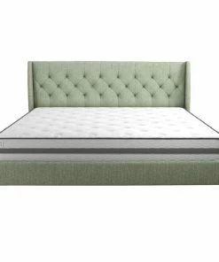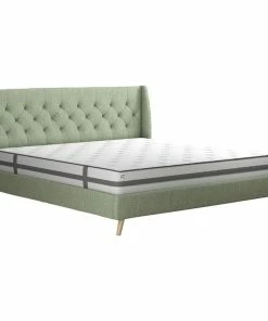 Get the royal treatment with the luxurious Her Majesty bed from Novogratz. The wingback headboard is covered in elegant tufted linen, which extends all the way around the equally stunning bed base. Thanks to the unique bentwood slat system, youβll enjoy superior back support with excellent pressure distribution. As well, the slats allow air to pass freely beneath your bed, keeping you cool and ensuring your mattress maintains its freshness and lasts for years to come. The four wooden legs are slanted for maximum support, with an extra two metal legs and center rail providing additional structure and comfort. No need for a box spring or foundation eitherβjust add a coil or memory-foam bed mattress and luxury bedding, then settle down for a great nightβs sleep! The classic design with regal touches makes this bed frame the perfect addition to any bedroom or an ideal choice for a guest bed.