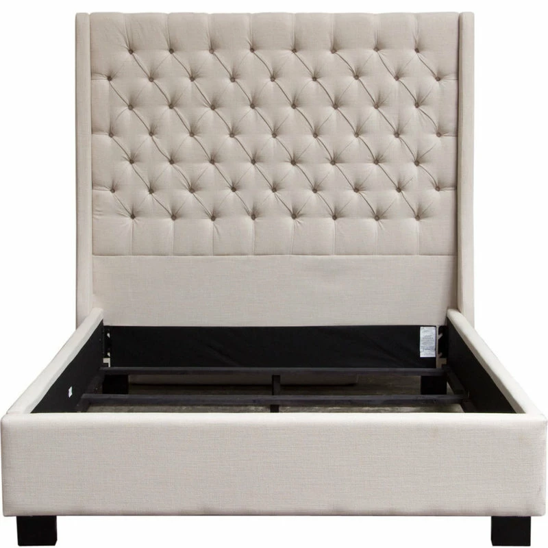 The Park Ave Bed by Diamond Sofa is a hand crafted / hand tufted upholstered bed standing 69 inches tall. The 12 inch frame includes four slats with center supports added into the cleats for structural integrity. With its tufted headboard, vintage wing accents and wood feet finished in a rich medium walnut finish providing the backdrop for the Wheat Savage Blended Leather finish – creating this timeless addition to any bedroom’s decor. Bed is available in Queen, Cal King & Eastern King sizes. Foundation or Box Spring is required.