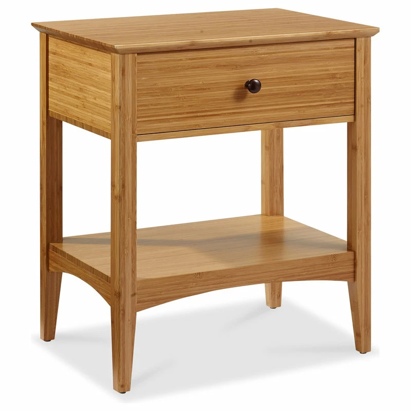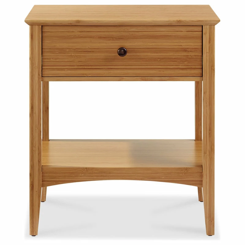Beautifully crafted in solid bamboo, the Eco Ridge Willow nightstand features clean lines, beveled edges, and gently tapered legs to create an elegant collection that compliments any style. The Willow nightstand features a spacious storage drawer crafted with English dovetail construction, and 3 piece full extension ball bearing glides. Softly curved base panel for added style. Ships fully assembled in a true caramelized finish.