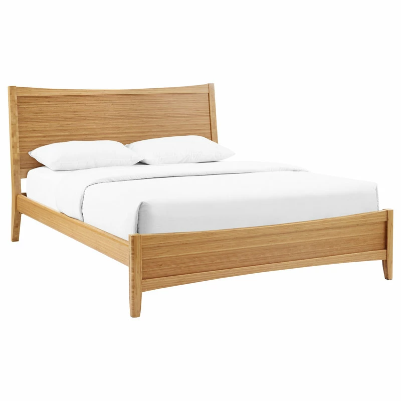 Beautifully crafted in solid bamboo, the Eco Ridge Willow platform bed features a sleek silhouette, soft curves, and gently tapered legs to create a modern elegant bedroom that compliments any style. The Willow platform bed is designed for use with a mattress only, which is supported with a solid bamboo European slat system, eliminating the need for a box spring. The Willow offers generous space for storage under the bed frame. Both King and Queen sizes are available in a true caramelized finish.