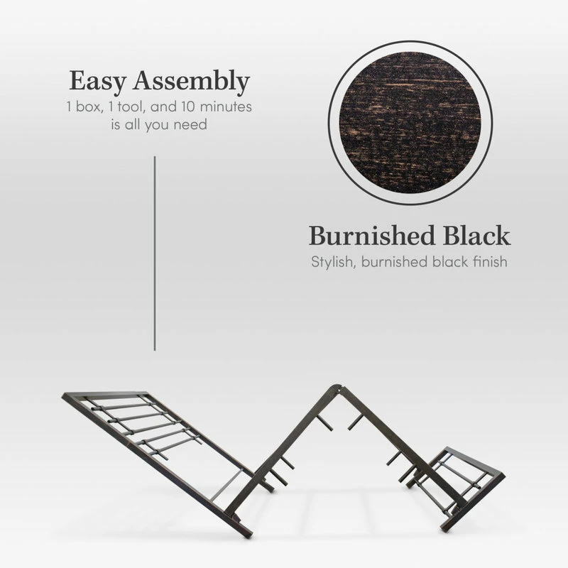 - Burnished black finish adds a stunning neutral that pairs well with most bedding.