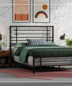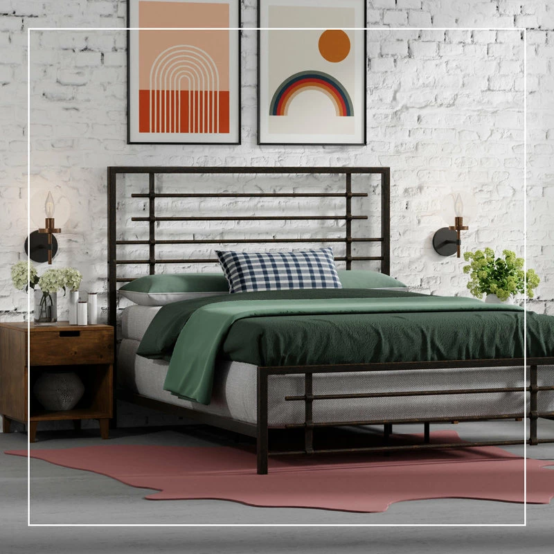 This industrial-style bed features metal piping in a burnished black finish that adds a sophisticated look to your bedroom. Get this bed into your home quickly and easily, thanks to the UPS-shippable design and easy assembly.