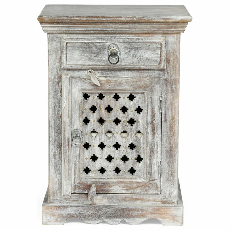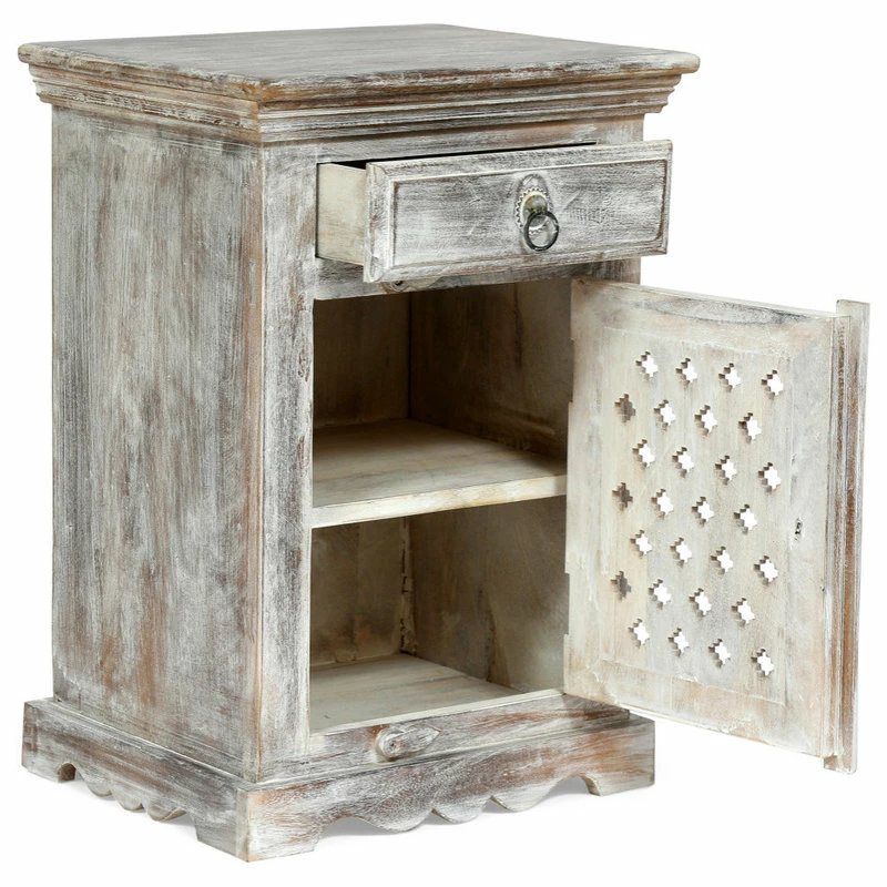 Combat your bedside clutter with an accessory that not only houses your charging station and books but also pulls together your interior decor with a unique yet cohesive look. With a durable mango wood frame and washed finish, our nightstand offers incredible structure and stunning looks for your interior space. This side table is the perfect companion to any living space with its drawer and cabinet space for storage. Featuring a distressed design, this nightstand adds sophisticated grace to any bedside or sofa.