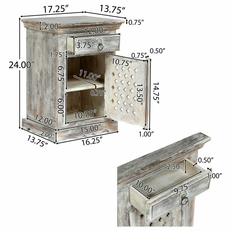 DIMENSIONS: Choose an accessory that is the perfect size for you and your furniture. This nightstand is 17.75″W x 13.75″D x 24.00″H. You will love how much your space can transform with the simple addition of this charming nightstand.