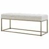 Refine your interior space with a sophisticated accessory that will command the atmosphere of the room. Our sleek ottoman bench brings a gorgeous modern touch to any living room, bedroom, or office space with its plush, button-tufted, waffled stitched top and elegant leg frame. Using a bentwood design, this polished accessory gracefully incorporates a smooth geometric base to give the overall piece a chic vibe. This ottoman bench is truly the ultimate addition to your home with its incredible comfort and excellent versatility.