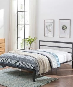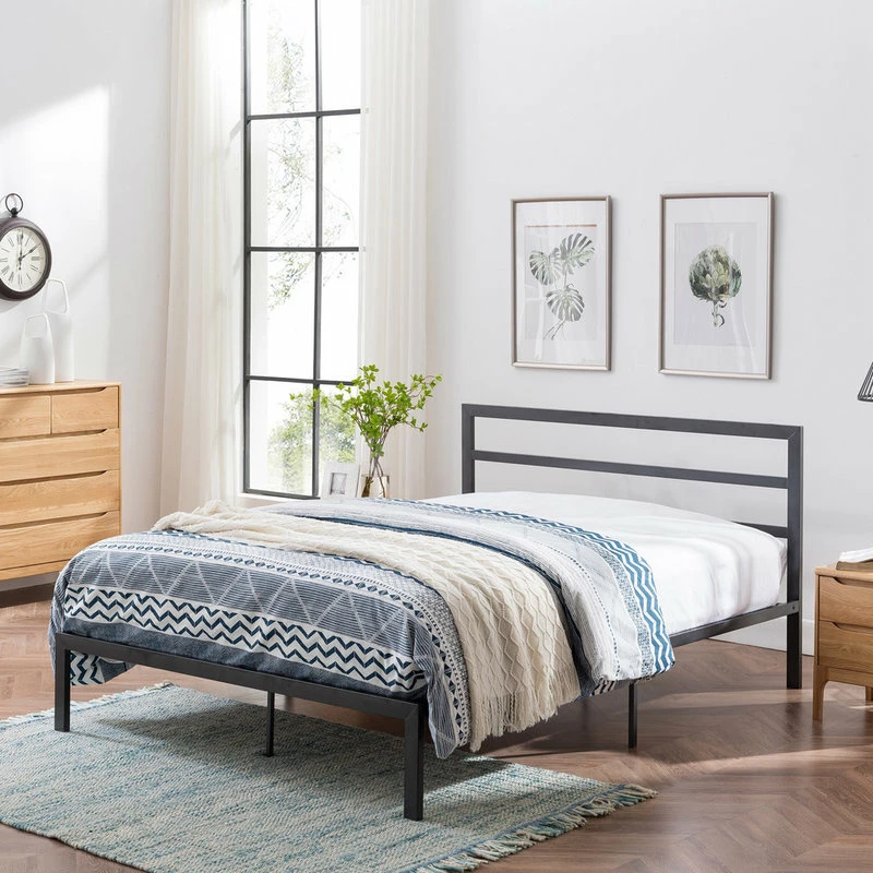 The Kellen queen-size iron bed frame is sleek, modern, and all-inclusive, ready to bear the weight of your mattress the second it is built; its versatile style and streamlined appearance make it adaptable enough to fit into any style of decor. Available in three sophisticated finishes and offering an androgynous look suitable for men, women, and children alike, this bed frame is a perfect fit for anybody looking to update the look of their sleeping space to a more contemporary standard.