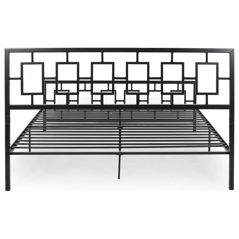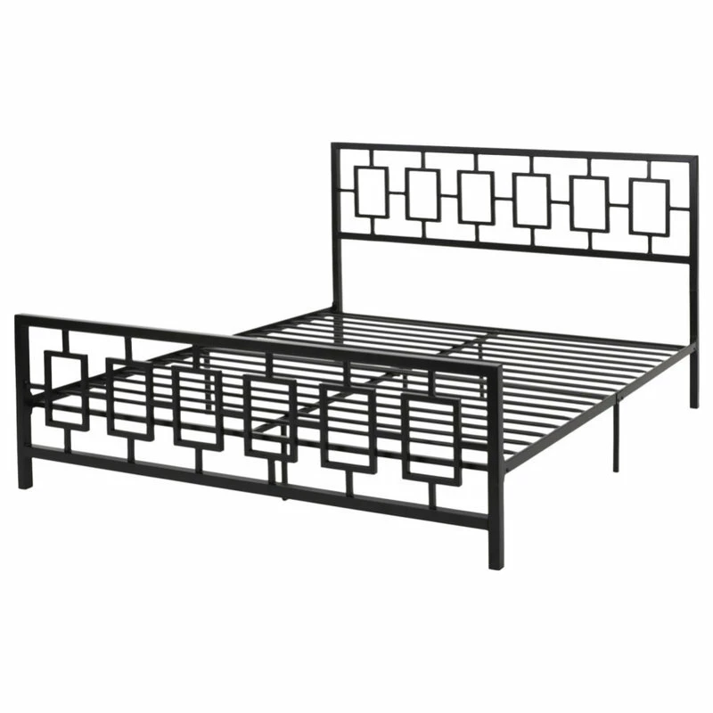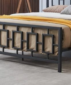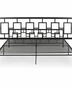 MODERN DESIGN: With clean, precise lines, our bed frame is the ideal modern accessory for your interior space. Finished with sleek iron slats and polished geometric design, this frame not only offers a chic, minimalistic look but also provides incredible structure.