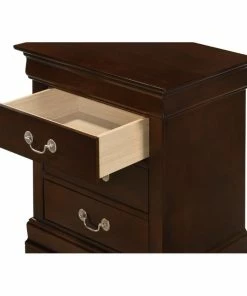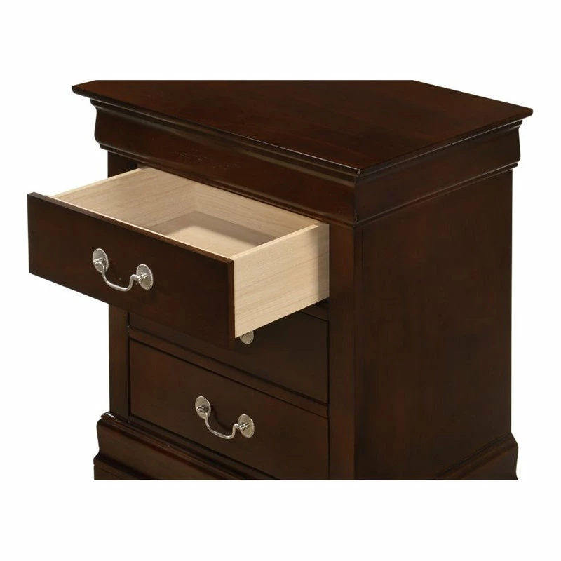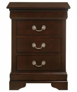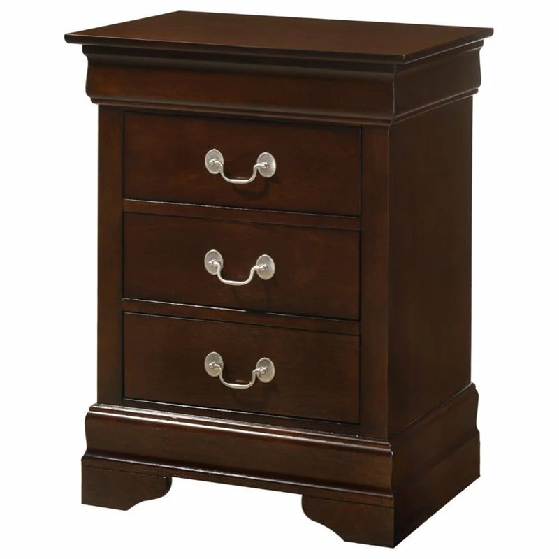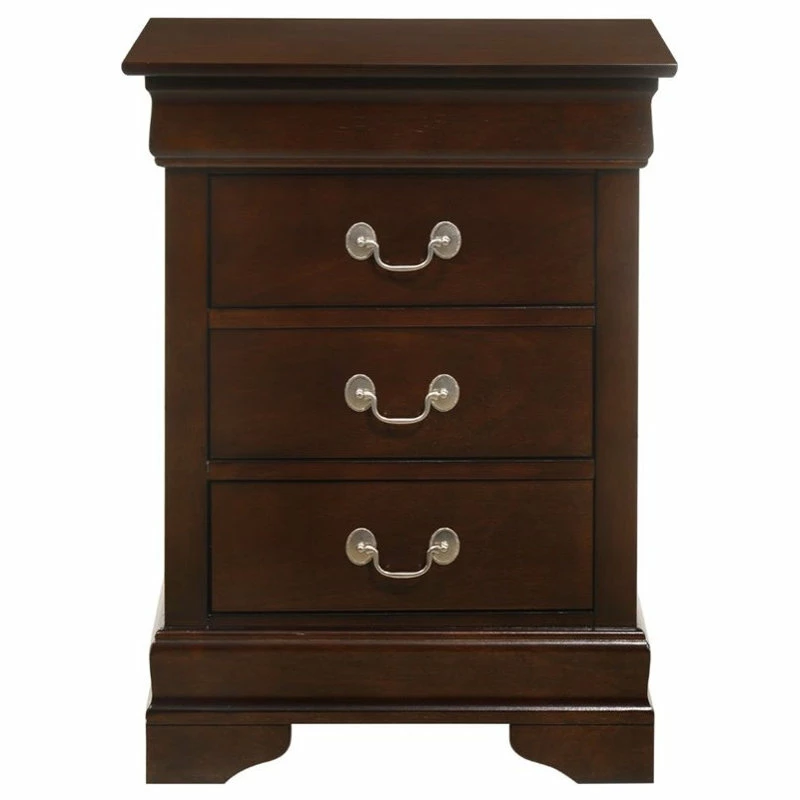 Assembled 3 drawer nightstand is finished in real wood veneers over manufactured and solid wood. Drawers move on center supported metal guides and are dovetailed front and back. Corner blocks are utilized to support drawer bottoms. Choose from a variety of colors. Additonal case pieces are available as well as matching beds