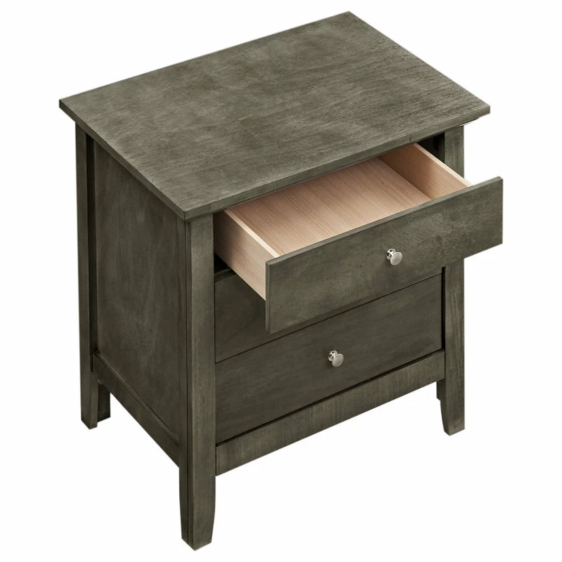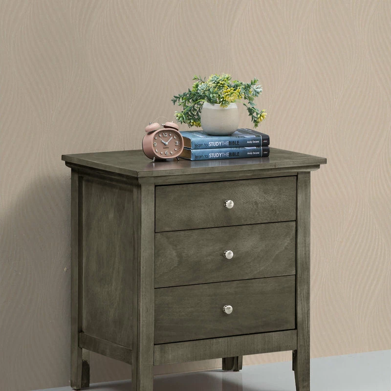 Less screen time. Avoid devices. Reading and journaling okay. We all know the guidelines for a more restful night. Create a sleep space conducive with those oft-ignored guidelines, as well as one that follows the rules for achieving a stylish design. The Whitley Nightstand is equipped with a trio of drawers that is perfect for stowing those off-limit items and bedtime essentials โ like tablets, phones and a pile of your favorite reads โ as well as a top spacious enough for a table lamp, a cup of herbal tea and your favorite photo. Its simple, clean-lined look and gray finish are perfect for bedrooms of any style, from transitional to coastal, and ensure your design is soothing and chic.