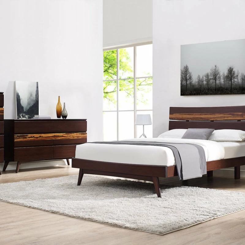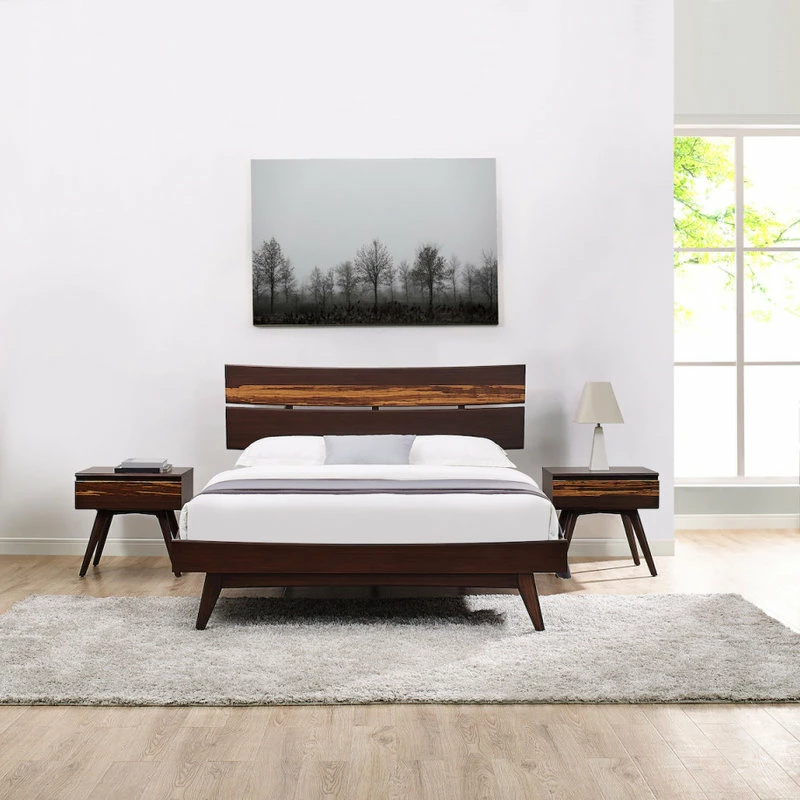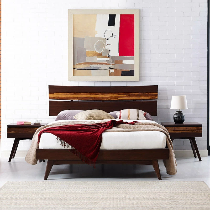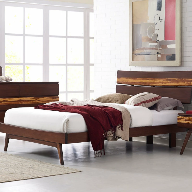 Drawing inspiration from mid century styles, the California queen-size Azara Bed features a slatted headboard and tapered legs. Made entirely from sustainable bamboo, this piece creates a feeling of serenity in any modern bedroom. This item pushes the boundaries of contemporary style with aesthetically pleasing function. Each individual piece is crafted from the finest materials for uncompromising quality and longevity.