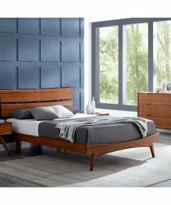 Artfully crafted in sustainable solid bamboo, the elegant Summit platform bed features a sweeping silhouette, contemporary splayed legs, and a deep Amber color. The Summit bed pairs perfectly with the Vale chests to create a transitional collection that compliments any style. Designed for use with a mattress only, the Summit platform bed is supported with a European slat system, eliminating the need for a box spring.