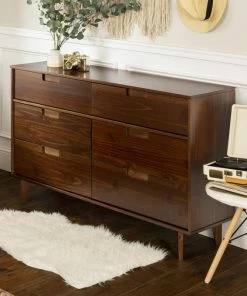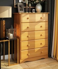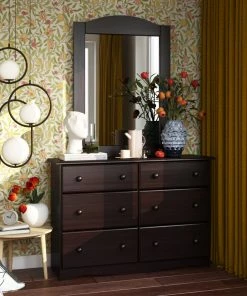 The Hodedah Seven Drawer Chest strikes a perfect balance between your storage as well as design requirements. It is constructed out of wood and is available in multiple finishes to choose from. This chest has seven drawers out of which two have locks and each drawer comes with extra support, which can handle extra weight. There is also a door when open reveals shelves and hanging rod for extra storage space. This chest has ample space on the surface top to showcase a photo frame, an antique clock, and a vase. This chest fits perfectly into any home decor. The Seven Drawer Chest by Hodedah has a clean and simple design making it easier for you to place it anywhere.