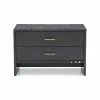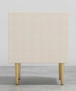 - The two pulls on this appealing nightstand have a brushed brass finish, adding to the chic fashion style.