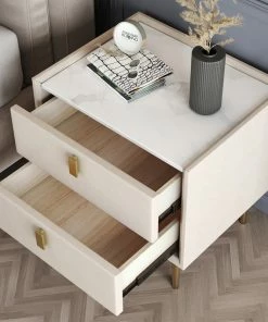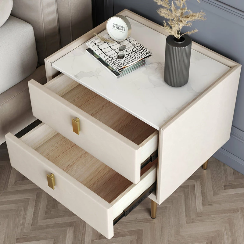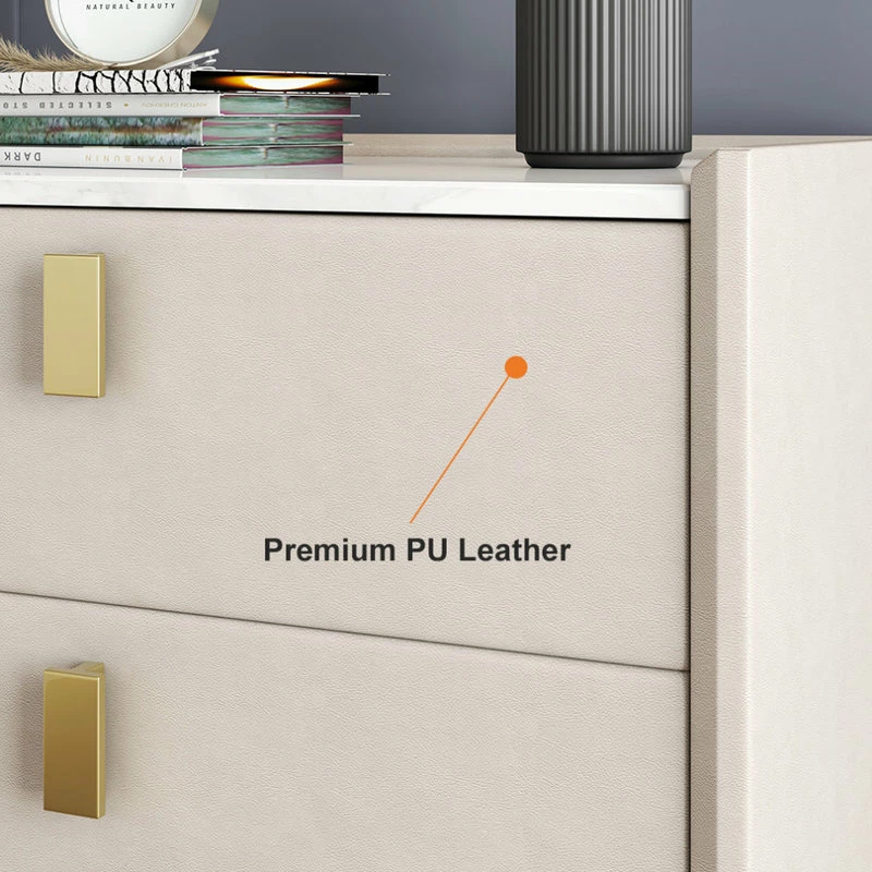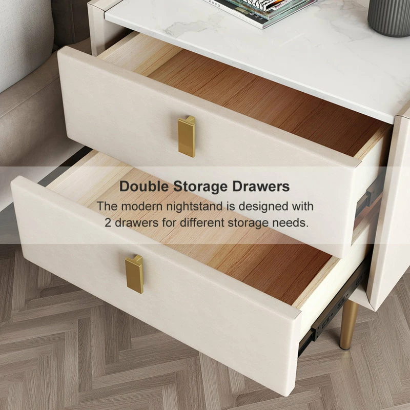 This attractive nightstand has a modern look that is both stylish and functional, and it is sure to catch the attention of anybody who sees it. The handsome PU leather appearance finish will provide a touch of sophistication to any bedroom environment. It has a simple sleek modern design that will bring a charming of luxurious style to your space and your bedroom will seem more stylish. Two large storage drawers give plenty of storage space for all of your bedside essentials, helping to keep the area around your bed clean and tidy. This nightstand may be used stand-alone or in conjunction with other pieces of furniture in your home will be the ideal addition to your living room or bedroom to create a timeless aesthetic.