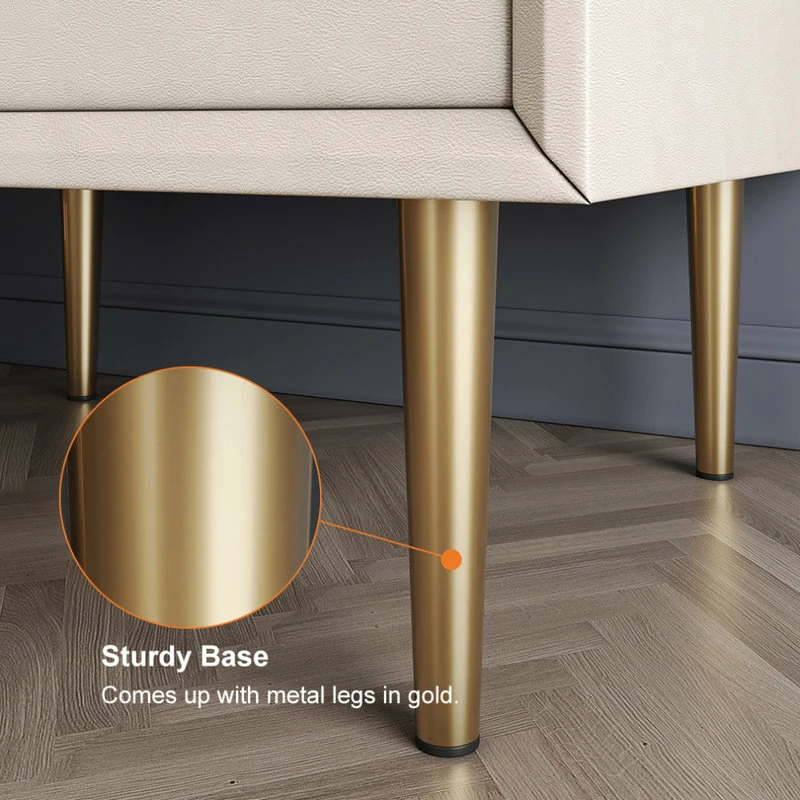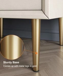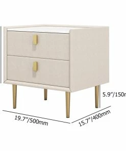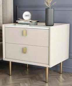 - The pinewood body and two inset drawers provide a clean and contemporary appeal to your bedroom, and the golden metal legs complete this design.