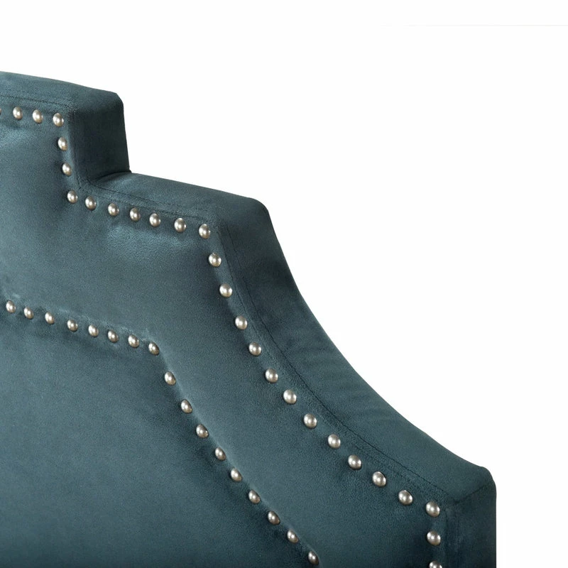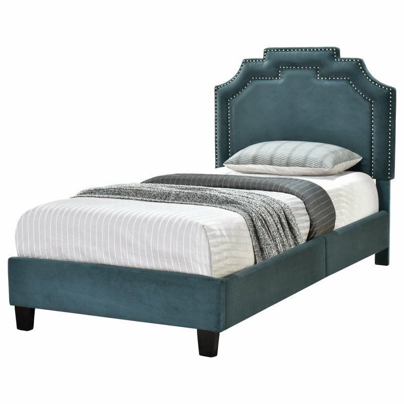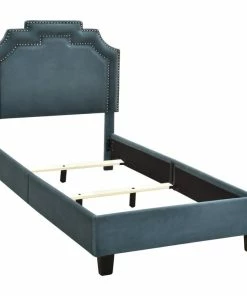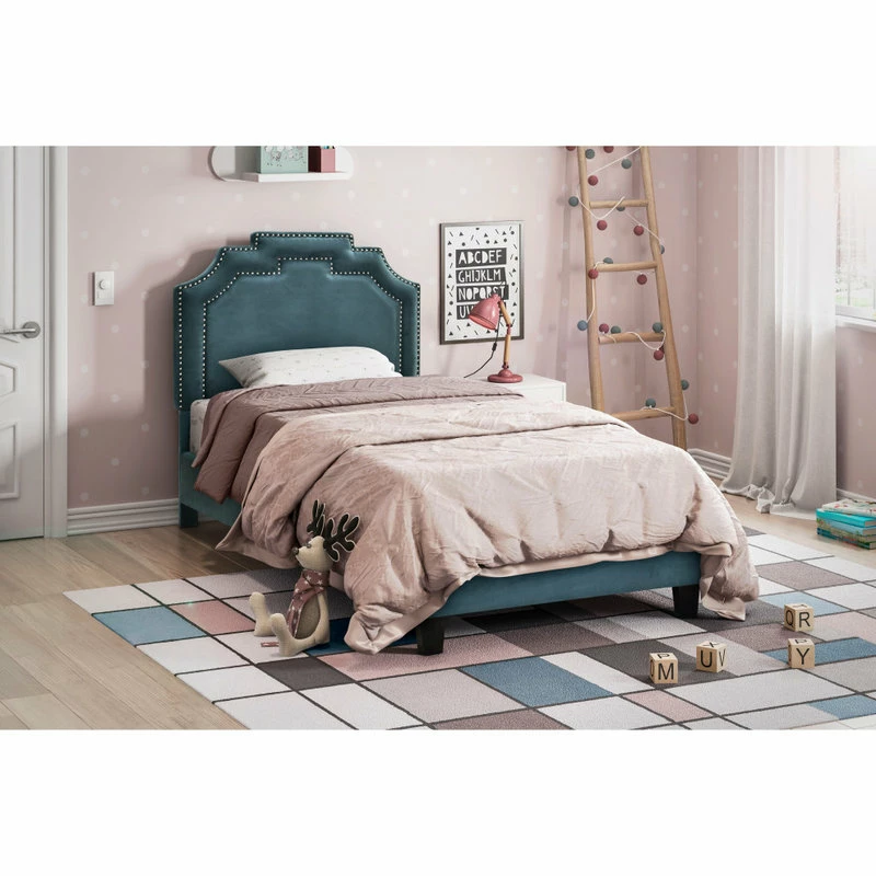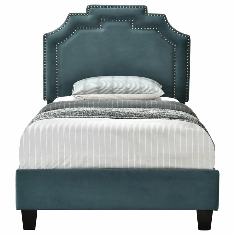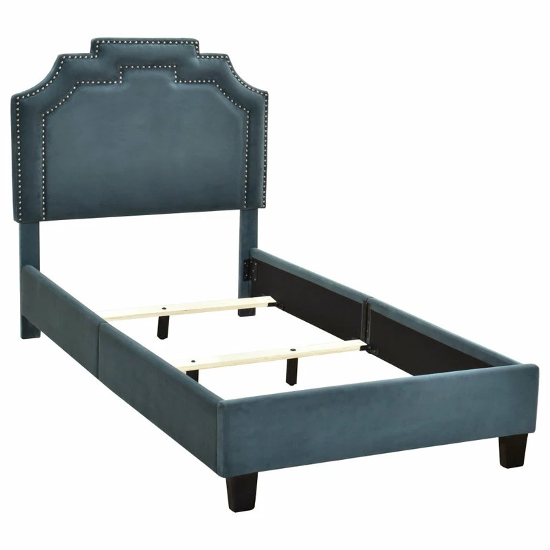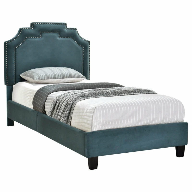 Outlet ✔️ HomeFare Geometric Shaped, Double Nailhead Trim Twin Upholstered Bed, Jasper Blue 🎉