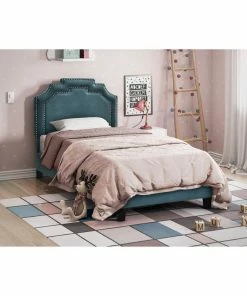 Be the first to review “Outlet ✔️ HomeFare Geometric Shaped, Double Nailhead Trim Twin Upholstered Bed, Jasper Blue 🎉” Cancel reply