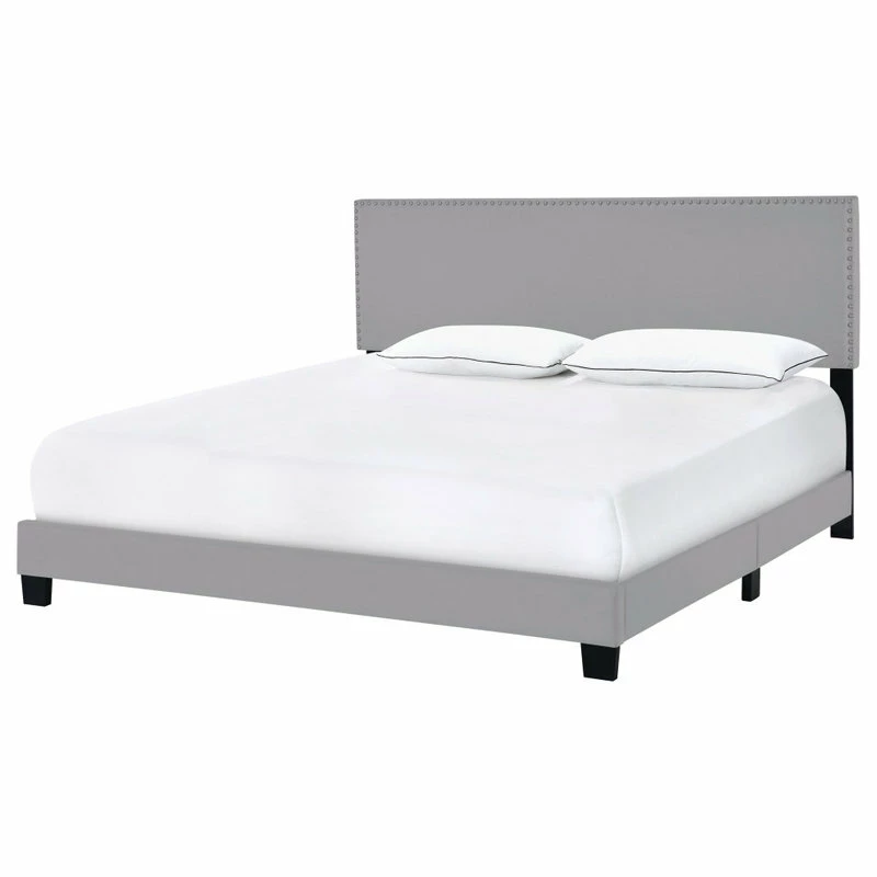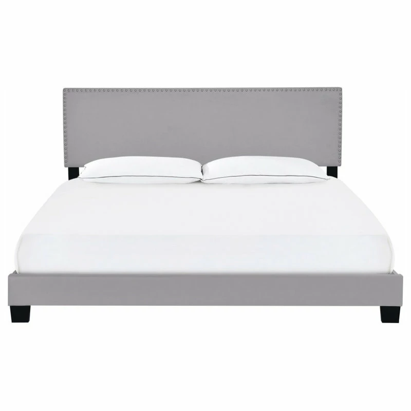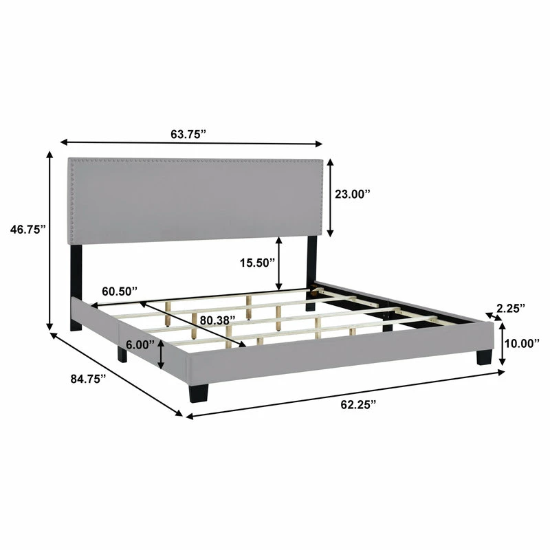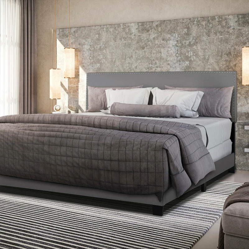 Best Sale 🥰 HomeFare Nailhead Trim Upholstered Bed, Gray, Queen 🛒