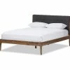 Best Sale 😀 Baxton Studio Leyton Mid-Century Modern Gray Fabric Upholstered Platform Bed, Queen 🔥