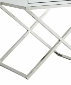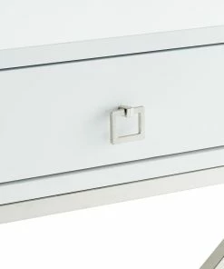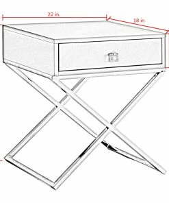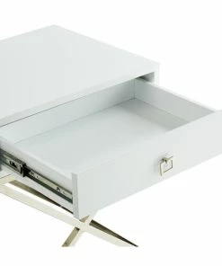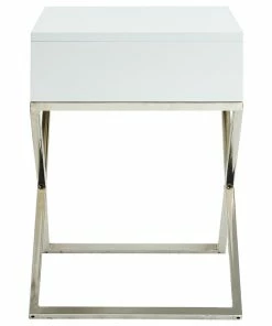 Our side table infuses an exquisite accent to your main furniture to create that modern cozy atmosphere in your home. Crafted from durable eco-friendly MDF in a sleek lacquer finish with X-metal legs, this elegant piece is ideal as an end table in your living room or a night stand in your bedroom. The rectangular top surface is perfect to display a lovely floral arrangement, lamp, or family photos; while the spacious gliding drawer with deco pull is perfect for stashing and organizing books, magazines, accessories and other living essentials safely out of sight.FEATURES: