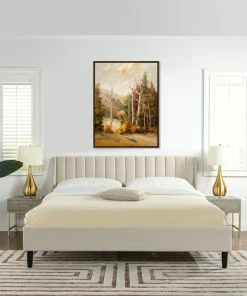 A simple yet elegant look gives the Aspen Upholstered Platform Bed by Sandy Wilson Home a modern yet timeless feel. The subtle vertical channel tufting of the low headboard and simple, solid wood legs are a nod to a retro 70’s look, made modern by the graceful, curved wings that sweep seamlessly into the side- and foot- panels for a completely unique platform design. Available in Queen, King and California King sizes in all the trend-worthy colors from Evergreen to Ash Rose to Anthracite Black, the Aspen Bed Set is the perfect centerpiece for your master suite, guest room, or teen’s room.