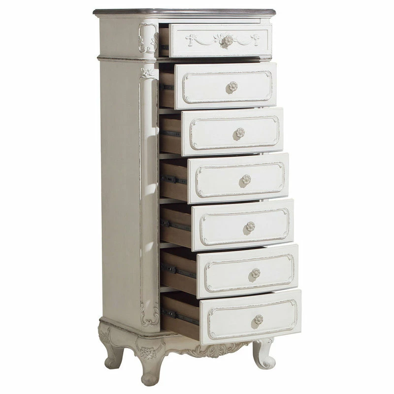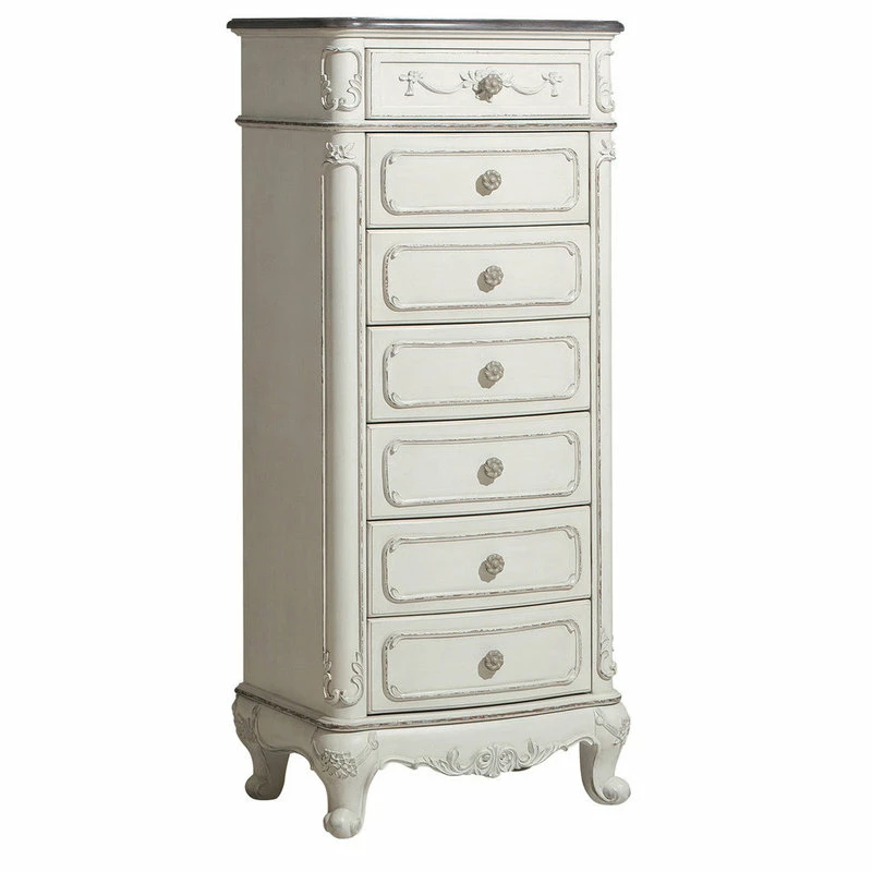 The Averny Collection is your little child’s dream. The Victorian styling incorporates floral motif hardware and traditional carving details that will create the feeling of a room worthy of a fairy tale. There are three available finishes – ecru white, dark cherry and the newly available antique white with grey rub-through that when paired with the multitude of case pieces and three coordinating beds, daybed, canopy bed and panel bed – allows versatility of placement and decor within your available space.
