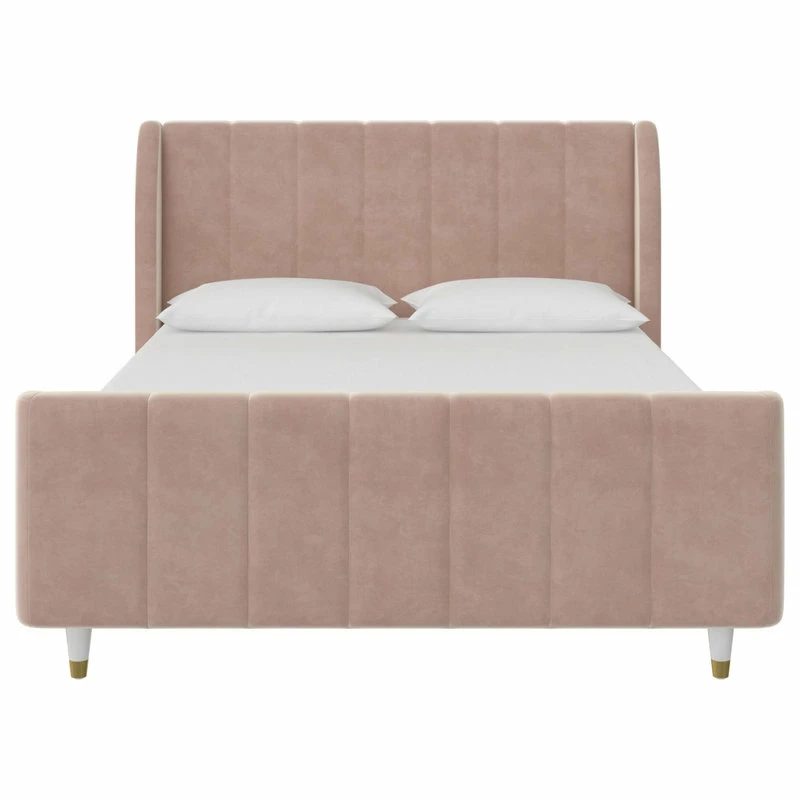 - Mid-century modern wingback design with vertical channel tufting on the headboard, footboard and side panels.