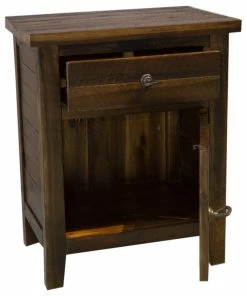 This reclaimed-finished-wood nightstand is such a good choice for many rooms , no matter what your personal style, but with personality and character that you wonβt find in a mass-market cabinet. Not too large and standard height are the most advantages suitable for small spaces beside the bed while still have large storage! Farmhouse tastes meet modern amenities in this charming one-drawer nightstand! Crafted of solid Acacia and manufactured wood in an reclaimed finish, this nightstand features aged hardware. Set on ball-bearing glides, the one-drawer could open easily and the one-door cabinet offers even more convenient storage space for bedside accessories.
