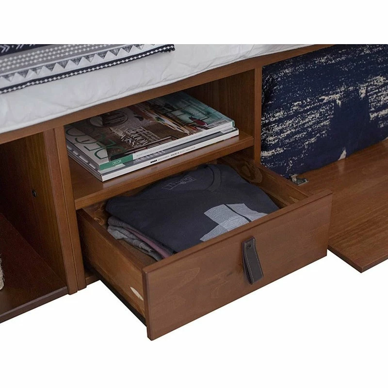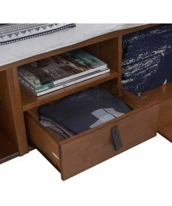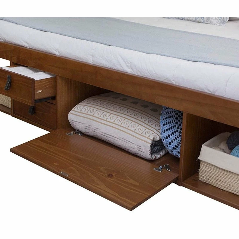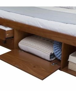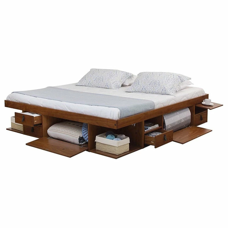 The bed has 6 (six) drawers, 4 (four) shelves, 3 (two) compartments with doors and also 2 (two) pullout shelves, that work well as a nightstand, for your favorite frame, reading books, coffee cups, cellphone charger or alarm clock. This piece of furniture optimizes your bedroom space