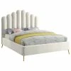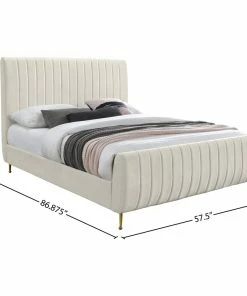 Slip into the lap of luxury with this Zara Velvet Bed. This beautiful full bed is padded to the max on its headboard and footboard for a look that is nothing short of upscale. The luxe design is amplified by the bed’s rich cream velvet upholstery and its deep detailed channel tufting, which also serves to keep the interior padding aloft, full, and comfortable while you relax or unwind in bed. The bed has gold legs for a regal touch, and it comes with slats, so it doesn’t require a box spring.