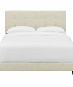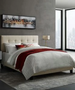Inspire sweet dreams with a cozy full bed. Designed with chic elegance and contemporary style, Amira comes with a soft polyester fabric upholstered base, timeless button-tufted headboard, and wood bed frame and legs, with non-marking foot caps. Complete with a reinforced center beam for maximum stability, Amira accommodates memory foam, spring, latex, and hybrid mattresses. A sleek and sophisticated centerpiece to the kid’s bedroom or guest suite, this modern bed effortlessly transforms your bedroom decor with its luxe look. Box spring required (not included). Bed Weight Capacity: 800 lbs.