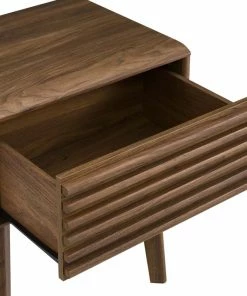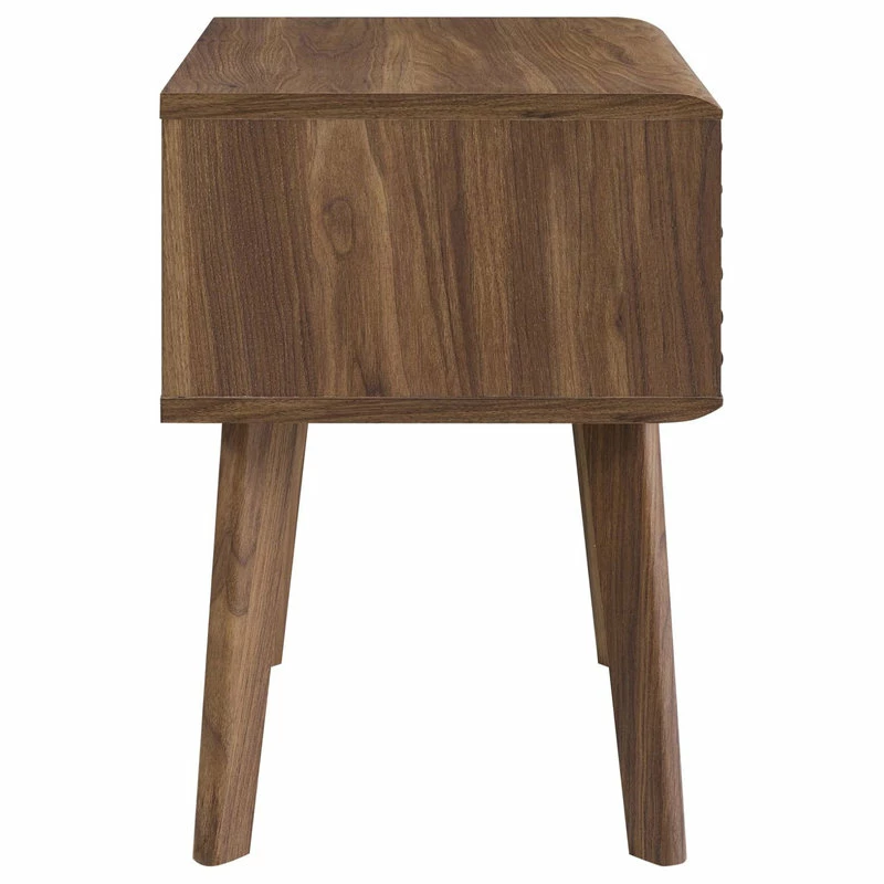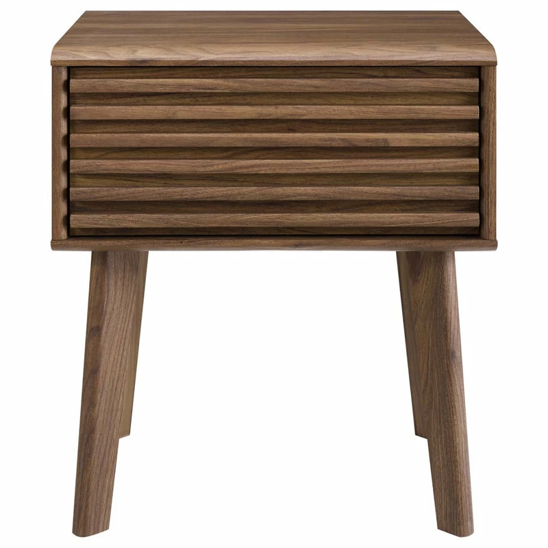 Tap into mid-century aesthetics with the Render End Table Nightstand. This bedside or living room side table features a durable particleboard frame with smooth walnut grain laminate, four tapered wood legs, and full-extension glide storage drawer. Boasting a mid-century modern style this accent table features a solid construction with a pleasing look and practical functionality.
