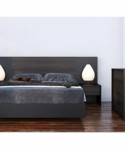Nexera 1-drawer night stand 212106 is offered in a trendy black and ebony finish with a scratch resistant melamine top panel. Its convenient drawer is mounted on solid metal slides and provides handy storage when you’re in bed.