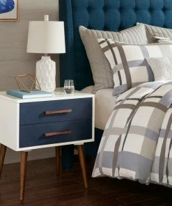 Transform your home with the striking style of the INK+IVY Jeremy Storage Nightstand. This rectangular nightstand features two pull-out drawers to easily store and keep your essential items within reach. The navy hues on the drawers are complemented by pecan wood handles and legs that stand out against the off-white frame. Create a stunning mid-century modern look in your bedroom with this handsome storage nightstand. Leg assembly is required.