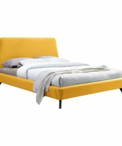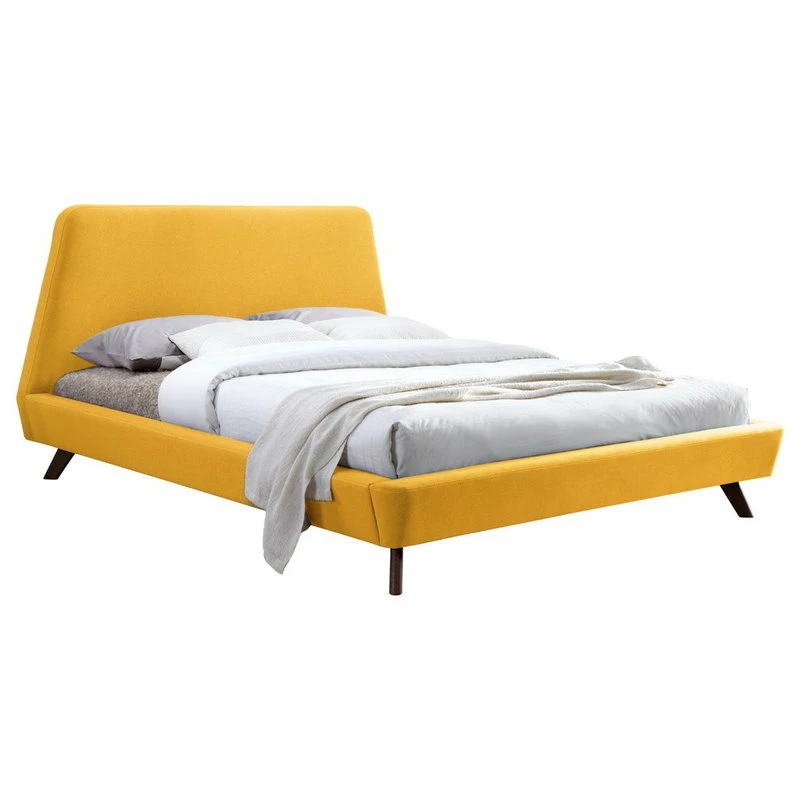 The mid-century inspired Henry upholstered platform bed will lift your mood and add the pop of color in your bedroom that you desire. The classy, yet soft frame and angled legs create a brilliant contrast and complement all furniture perfectly. Look forward to retreat any time to this work of art in its own.