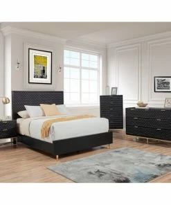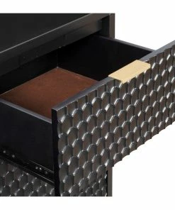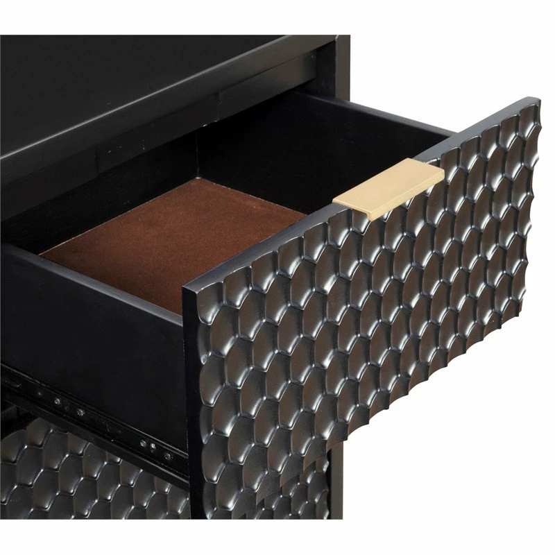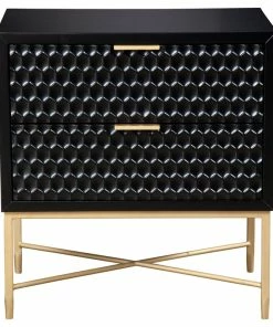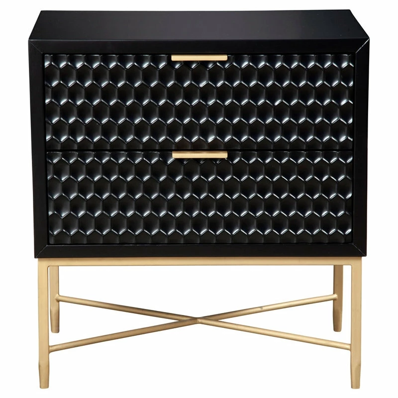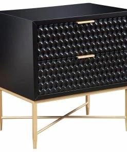 Sophisticated Contemporary Styling, the Black Pearl Nightstand looks great in any bedroom. Crafted from Mahogany Solids & Veneer, the 2 storage drawers feature textured drawer fronts and gold handles. The gold metal base gives the piece an open, off-the-floor look and simplifies cleaning. Coordinates with other pieces from the Origins by Alpine White Pearl and Black Pearl bedroom collection sold separately.